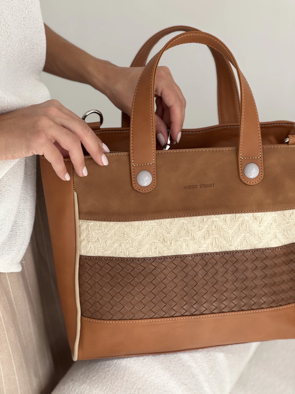 Tote Bag Gala Caramelo: elegancia y funcionalidad en un diseño exclusivo. Confeccionada en P.U., esta tote bag combina durabilidad y estilo sofisticado. Su compartimento principal cuenta con cierre metálico YKK, garantizando seguridad y resistencia. El interior, forrado con la exclusiva tela Amber Stuart, incluye un bolsillo con cierre para mayor organización.
